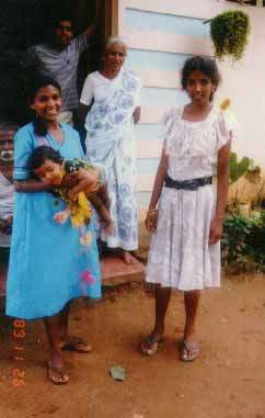 Dhammika is the young girl standing to the right. This photo was taken in front of her house in No. 31 Maiyahawa M.T., Kandy, Sri Lanka. The date on the photo is November 26, 1989.