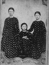 The caption on the back of the photo says: "Aunt Annie, Aunt Jane and mother about 1864"