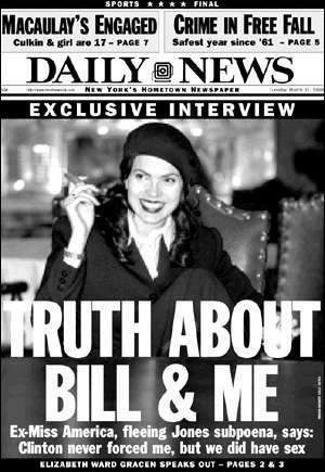 Here is the article in the New York Daily News: Beaut of a Tale On Sex With Bill: Ex-Miss America says encounter was consensual .