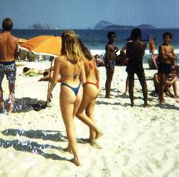 A typical scene on the beach. However, the girls in the photo are wearing rather too much clothing. The girls on Ipanema Beach usually wear much less than that.