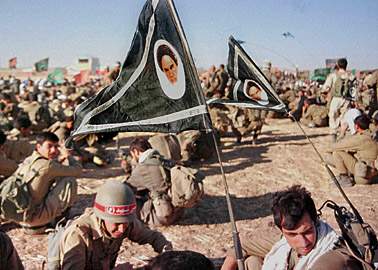 ![]() Iranian soldiers waving banners bearing pictures of Ayatollah Ruhollah Khomeini, the leader of their country's Islamic revolution of 1979, took part in a military exercise near the border with Afghanistan. |
