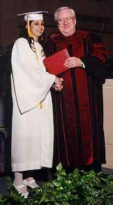 Jerry Falwell squeezes the hand of Shamema Honzagool Sloan, daughter of Sam Sloan