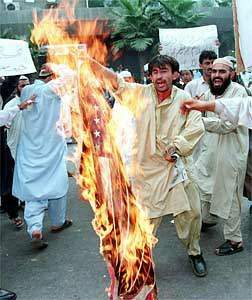 ![]() American Flag burned in Street Protest in Pakistan Yesterday |