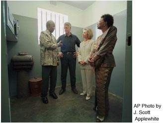 President and Mrs. Clinton tour the former Prison Cell of Nelson Mandela