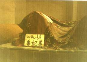 On the tomb is written in Uyghur "Iparhan". Iparhan is considered by many Uyghurs as a Uyghur woman hero. There are controversies around this historic figure. The Chinese historians call her Xing Fei (Fragrant Lady) and consider her as Manchu Emperor Qienlung's concubine, which is insulting to the Muslim Uyghurs.