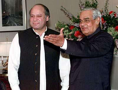 Pakistan's Prime Minister Nawaz Sharif and India's Prime Minister Atal Bihari Vajpayee meet in New York