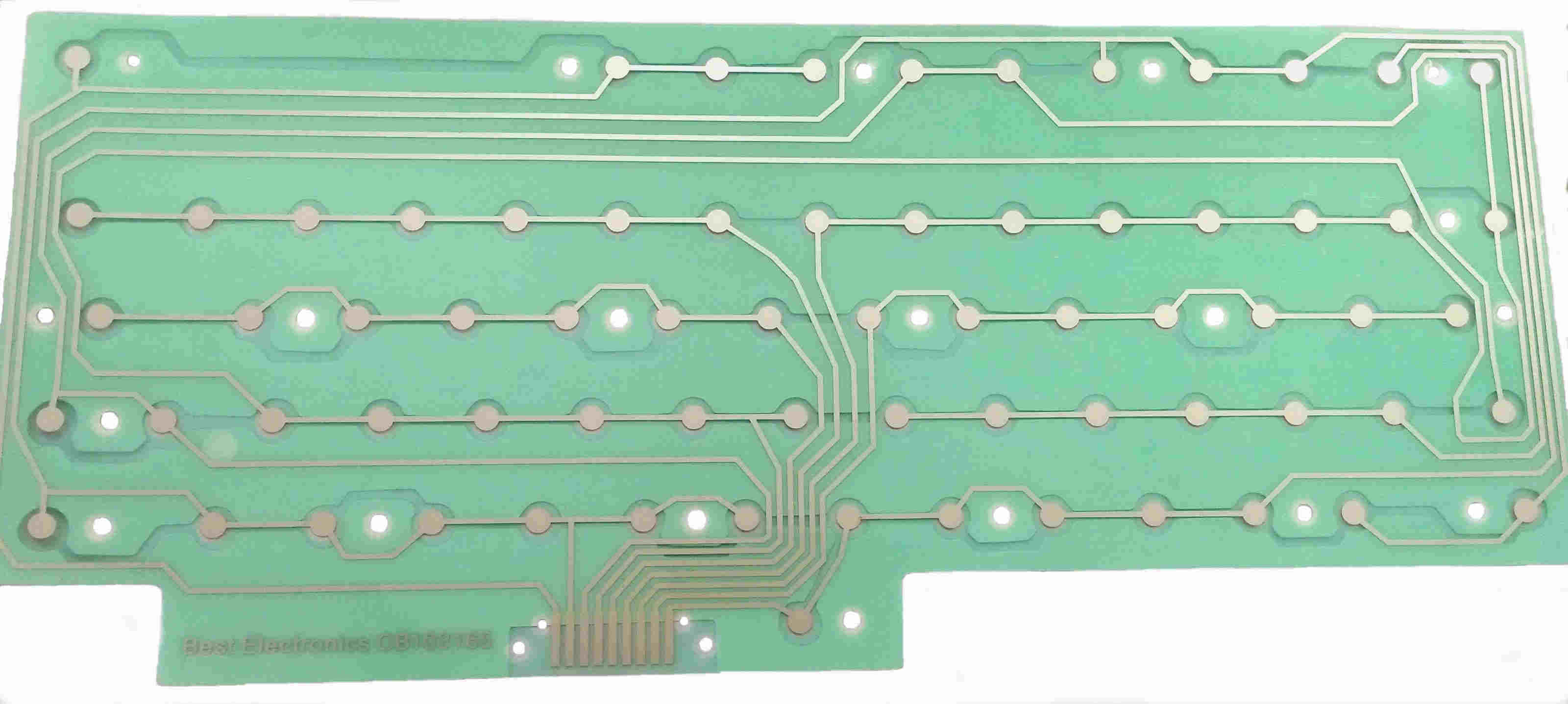 Conductive / Inner side of the Best 1200XL Keyboard Mylar that sits against the green PCB board with the circuits traces and the gold round keypad dots.