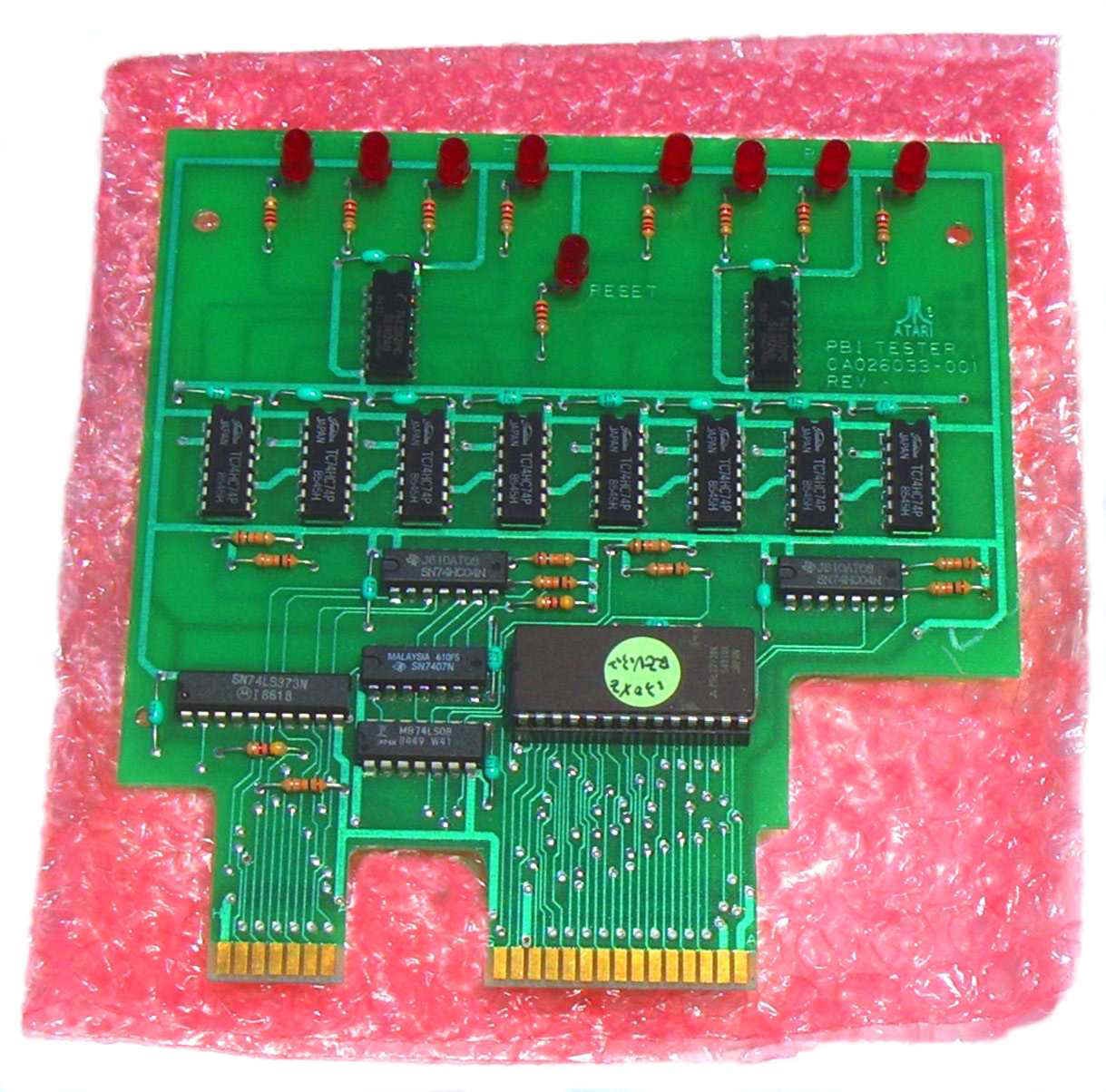This Atari Service Center Tool is one step above of the normal Atari XL and 130XE Diagnostic Cartridge, CB101048. The 130XE Buss Diagnostic board plugs into the rear 130XE cartridge port and the expansion port connectors at the same time. It has the same tests as the above CB101048 XL/XE Diagnostic cartridge plus also has 9 Red LED’s indicate the 130XE buss status (DIXX, REF, IRQ, HALT, A14, A15, R/W, O2 and RESET) of the 130XE motherboard. So these 130XE Motherboard buss functions can be checked using the Atari 130XE PBI Diagnostic card without the normal use of an Oscilloscope. It will check the 130XE internal buss status on a working Atari 130XE or a Dead Atari 130XE (no video display). You plug in the Atari 130XE Diagnostic board into the 130XE rear connectors and turn on the Atari 130XE. Two things will happen. All of the Red LED’s on the Atari 130XE Rear buss test card will come on for a second and then turn off (a normal working Atari 130XE computer). Any Red LED’s that stay on will indicate a 130XE Motherboard Buss Error which relates directly back to the Atari 130XE Schematic buss lines. Trouble shooting a dead or semi working Atari 130XE Motherboard job becomes much easier. On a working Atari 130XE you will see an Atari Diagnostic Menu on your display Monitor. You can run the following Tests using the Atari 130XE PCB board on board diagnostic tests: Production Test (6 tests), Audio Test (6 tones), 3 part Video test with Color bar generator for setting proper 130XE color display, DB-9 Joystick Port Test (requires two optional DB-9 cables and a shorting board assembly, information to build a 130XE Joystick shorting board is in the Atari 130XE Technical / Field Service Manual, 130XESFM) and SIO port test (requires a SIO special Shorting plug, TE15639)(6 tests), 130XE Keyboard Test, 130XE ROM Test, 130XE Ram and 64K Ram bank tests with a ram chip failure display matrix and 130XE PBI Test. These Atari 130XE Individual Diagnostic Tests can be run in a single test mode or in a continues 24 / 7 loop mode to fully burn in a repaired Atari 130XE Motherboard. In the past, this 130XE Diagnostic Board was ONLY sold in the complete Atari XE Diagnostic Hardware Service center Dealer kit! The above pictured 130XE PBI box is not supplied with all 130XE PBI boards. Atari packed 4 of PBI boards in one display box. |