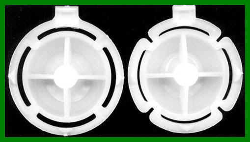 The Atari CX40 inner handle went thru many many Atari Engineering Rev. changes over a 20 to 25 year life cycle. But they can be grouped into 3 basic Atari CX40 joystick handle styles. The early 1980 CX40 handle with a very skinny / thin outer ring (left handle in picture above) which would easily fail / crack / break with the 4 small half diameter raised studs (on the thin outer ring) with small tits on the top of the stud that pushed directly on the top of the CX40 PCB dome contacts on CX40 inner PCB board. When one of these thin outer plastic ring would break, you would hear a clicking sound (from under the rubber boot) as you moved the Joystick handle you would lose some X / Y Joystick functions. A second version CX40 Atari Joystick handle with a beefed up / thicker solid outer ring will larger half diameter studs and with the small tits on top of the 4 studs again. The last and final CX40 handle revision change Atari Engineering made was a New / Final generation CX40 Handle with 4 flexible arms / lobes (above right side picture) with larger half round studs with again small dome contact small tits.