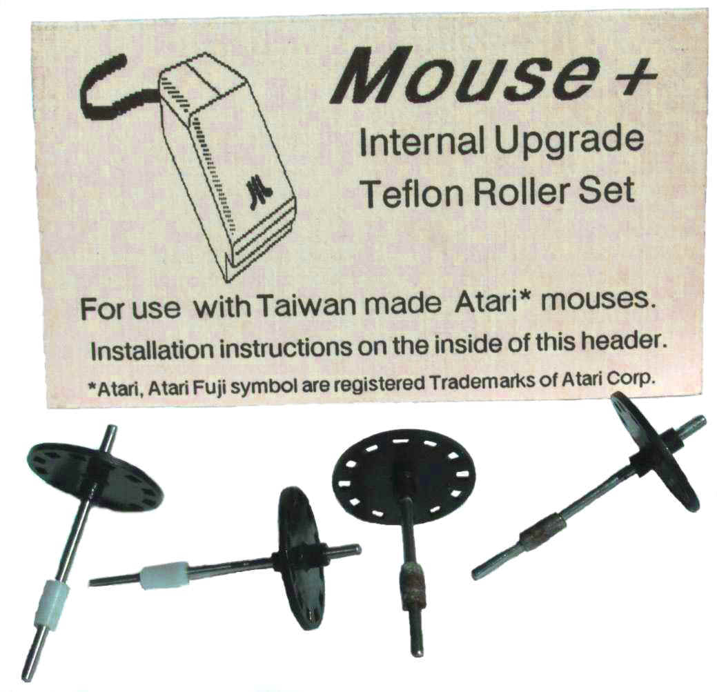 Best Mouse Plus upgrade Teflon rollers for Taiwan made (the bulk of all Atari STM1 mice made, see the bottom STM1 mouse label for the International Country it was made) Atari STM1 Mouse. One of the reasons why an Atari STM1 Mouse starts to act funny and not track properly is because the internal rollers become coated with gunk, lint, human skins cells, oils and sweat that was transferred from the mouse ball and do not properly spin / track properly any more. In the picture to the left you can see the new Best Teflon coated Mouse+ replacement Rollers to the right and to the left some well used steal shaft STM1 Taiwan made mouse rollers shafts. Normally the STM1 internal rollers should be a bright shinny chrome color, but the used ones in the picture are all most fully well coated (with a black material) and the steel is now are starting to corrode to the point they can no longer be properly cleaned or properly work any more. One of the best Atari STM1 mice made (out of the 5 to 7 different versions made) had all Teflon internal rollers and basically you never had to clean those internal ST mouse rollers. The Best Mouse Plus upgrade rollers will replace your old going bad STM1 Taiwan made mouse internal steel shafts and make your old Atari STM1 mouse act like new again. You will still have to clean the third steel mouse ball pressure roller inside your Taiwan made Atari STM1 mouse. All that is required to install the Best Mouse Plus upgrade Teflon Rollers is a small Phillips screwdriver. CB101619 Reg. $15.95 per pair Sale price $10.95 a pair