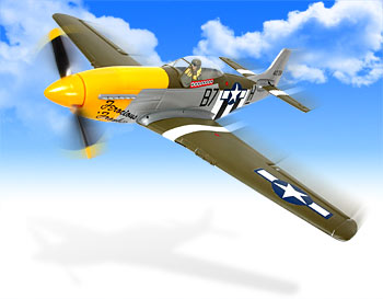 | Oh my, oh my, this monster RC P-51D Mustang is a beauty. It's a fully aerobatic Charge-and-Flyâ„¢ reproduction with stunning details, and getting it airborne is about as simple as it gets. Just attach the wing and tail, connect the battery to the charger, and in as little as 40 minutes, you're flying. As with all RCs it's a very good idea to ensure that the first charge is a good and long one (like 12hrs) as it'll give you much more flying time later on - after which you can charge it up in just 40 minutes. Once in the air, you can choose between two flight modes - A or B - with just the flip of a transmitter switch. Mode "A" limits the amount of control surface travel for beginner pilots so manoeuvres are smooth and manageable. Mode "B" grants an experienced pilot maximum control surface movement for high-energy Mustang manoeuvres, such as loops, victory rolls, Cuban-8's, and more. With a wingspan of a metre and a transmitter range of 2500ft you're going to need some space to fly this, and once airborne you'll be in heaven, because boy does this look hot or what. For Advanced Pilots : More advanced park flyer pilots will be pleased to know that the Mustang's receiver/ESC module and two servos can be removed and used in other speed 370 or 400-class electric aircraft. That list includes V-tails and delta wings, thanks to selectable control mixing in the receiver. The receiver is also equipped with an X-Portâ„¢ connector, but not an external port, and the speed controls auto-cut-off can be adjusted to work with 3-cell Li-Po battery packs. Features Proportional scale rendition of the P-51D Mustang. Your "Ferocious Frankie", as the plane is entitled, is fully aerobatic. A one-piece, semi-symmetrically shaped wing. Proportional Aileron, Elevator and Throttle. Two different flight modes, 'A' and 'B'. 'A' limits the amount of control surface travel for transitioning pilots. 'B' grants an experienced pilot maximum control surface movement for high-energy Mustang manoeuvres, such as loops, victory rolls, Cuban-8's, and more. Authentic, factory-applied paint scheme and decals. A powerful 180 Brusless-motor with gear reduction. A reusable 27MHz proprietary 4 channel radio system with receiver/ESC module, and two separate 5-wire servo motors. 6 frequencies on 27MHz. Your Mustang's receiver/ESC module and two servos can be removed and used in other speed 370 or 400-class electric aircraft such as V-tails and Delta Wings. The receiver has an X-Portâ„¢ connector and 3 jumpers for LiPo compatibility, use on a V-tail plane, and for using Flight Trak. Adjustable speed control auto-cut-off. Ferocious Frankie comes with everything you need to get him flying:- An FM transmitter. A variable rate DC Peak Charger (to plug into your car's cigarette lighter). A transmitter range of 2500 feet. Requires a 9-cell 11.1V, a 1600mAh Li-Poly (included) and for the transmitter 8 x AA Batteries (included). Full instruction manual. Average charge: 40 mins. Flying time: 15 - 20 minutes. Assembly Time: 10-15 minutes. Suitable for ages 8 years +. Size: - Wing Span: 85cm Overall Length: 76cm Flying Weight: 456g. Keep propeller away from your body and hair. Children aged 14 years and under must be supervised by an adult. This plane does NOT require a flying licence. |