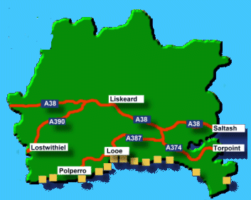 attractions and the Gardens of Cornwall are marked