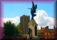 Fight or Flight, every man faces it in his lifetime. In that choice we define the rest of our lives. For Brythnoth that moment was 993 AD, against the Vikings. The Long Serpent made it's appearance over the horizon despite the prayers of the British, on the Essex Coast, “Save us, O Lord, from the fury of the Northmen!” A prospering country, divided into tiny kingdoms that were undermanned and under defended, stood a ready prey for the Vikings of the 10th Century. Already a victim of raiding Northmen, the forays into Britain's coast had increased both in number and intensity. The people fearing not only for their lives and their country, had sacrificed enough gold, food, and men to last a lifetime. It was time to stand against the Sea Dragons, or War Wolves. It was the year 993 AD, and this resounding defeat at the Battle of Maldon, resonates down to our day for it's meaning of what men everywhere consider to be their greatest possession, their freedom to live in peace and follow the dictates of their conscience. It began that morning with the arrival of just under a hundred Viking ships. The day erupted with decorous threats from the Vikings. “Swift striking seamen...bid me say...send them rings and bracelets...rather than engage us in cruel combat...we offer a truce in exchange for gold! ...Render to the Vikings what they think is right...and we will... hold you as friends.” Friends indeed! Brythnoth, the Earl of Essex, was ready to defend his land to the last man. Being of Viking descent himself, he called back to those “Sea Wolves” with these words. “Hear Sea Wanderer what this nation says. These men will give you spears as tribute...it would be a pity if you were to take our riches without a fight...first point and edge will sort things out between us!” In October 2006, a new statue of Brithnoth was erected in Maldon on a site at the end of the Promenade looking down the river estuary towards the nearby battle site. The statue is very impressive being nine feet high and cast in bronze. Not only is it an attraction for visitors enjoying the Promenade on foot, but also makes a notable landmark for those in boats navigating the River Blackwater into Maldon. |